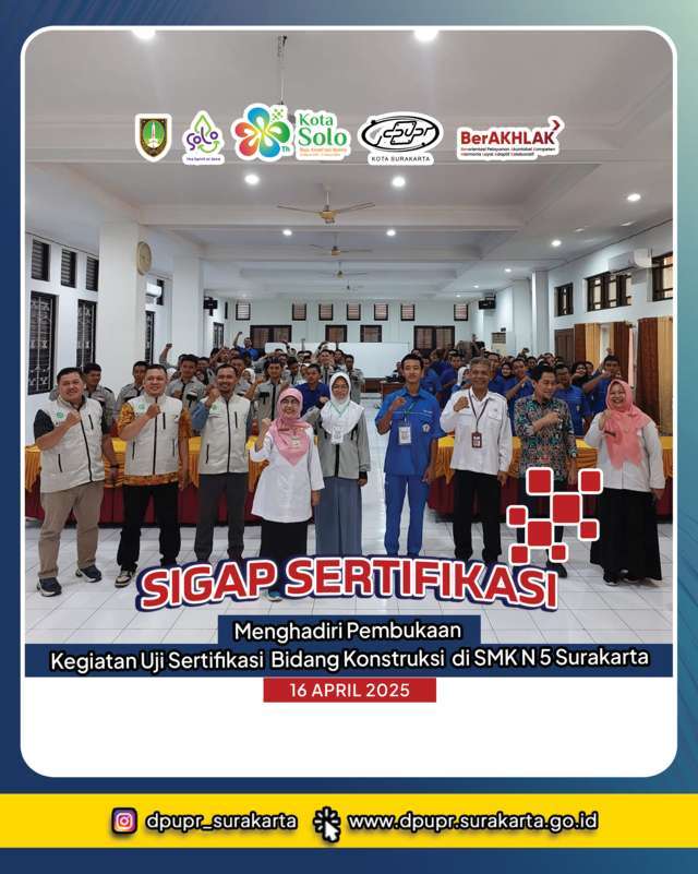 Menghadiri Pembukaan Kegiatan Uji Sertifikasi Bidang Konstruksi yang dilaksanakan di SMK Negeri 5 Surakarta